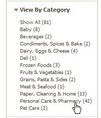 You can view coupons by type of grocery product, or by brand, based on what you want to order for your next grocery delivery.